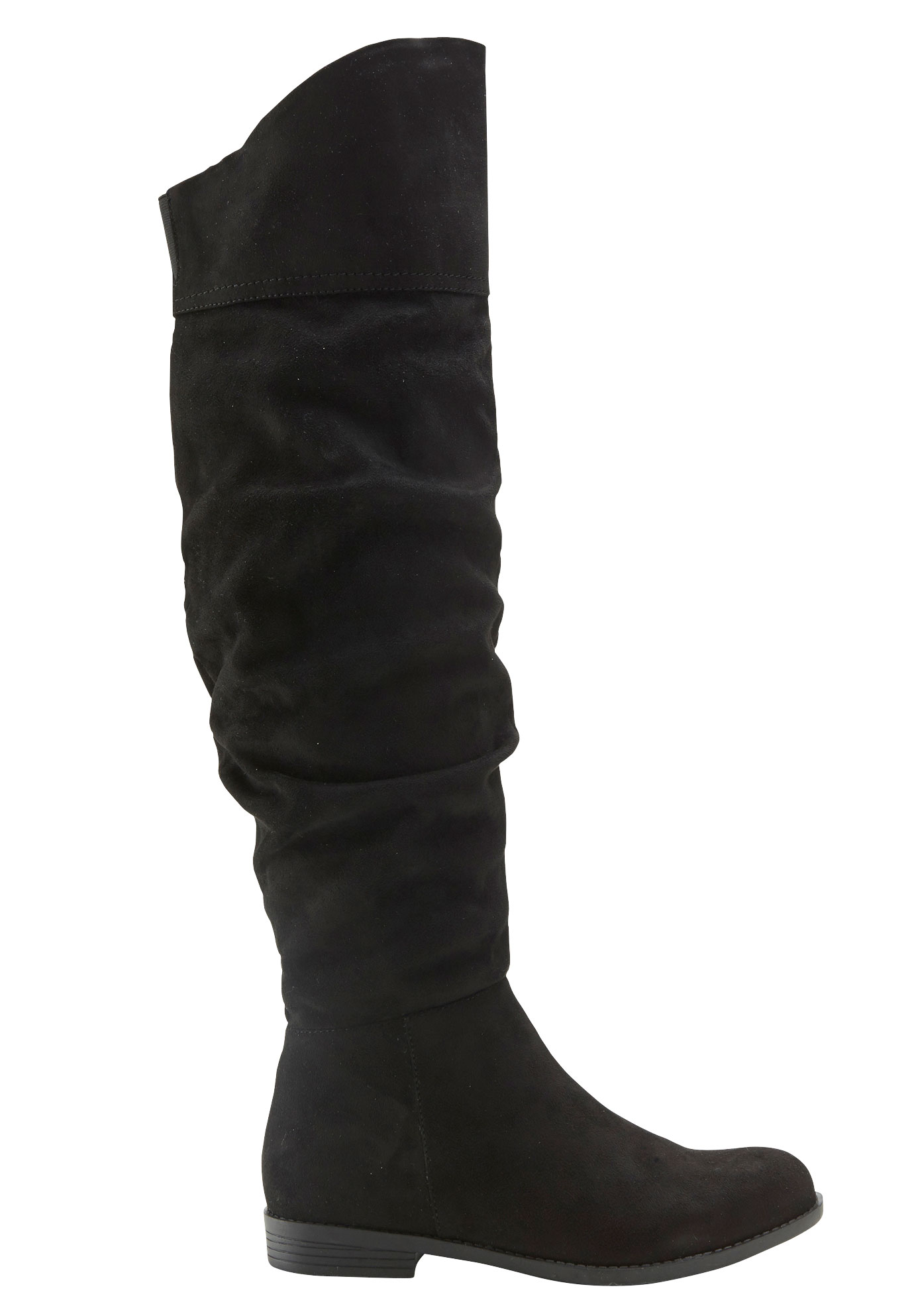 ellos Women's Over-the-Knee Faux Suede Slouch Boots. Over-the-knee boots are a modern day-to-night option. Ours feature a slouchy fit, exposed black half zipper, elastic tab at back knee for easy wear and a fully padded fleece sock for warmth. Wear with this season's dresses for downtown chic. Slip-on silhouette1" heel heightFaux suede upper/outer lining/fleece lined, rubber sole Spot clean, imported." Sale Price: 74.90 USD. SKU: 1516725351340mk7-M712M. Brand: ellos. Color: Black. Gender: female.