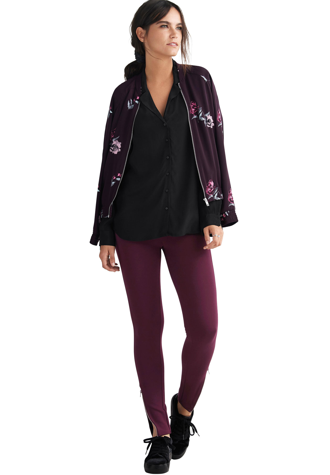 ellos Women's Ankle Zip Ponte Leggings Pants. A must-have in your closet –Our new ponte leggings have a sleek zipper detail at the ankle that can be worn zipped or unzipped. A wide covered elastic waistband ensures all-day comfort & style. Skinny silhouetteApprox. 27" inseam hits the ankleRayon/Nylon/Spandex Machine wash cold. Imported. Sale Price: 42.90 USD. SKU: 1520225253695mk18201820. Brand: ellos. Color: Midnight Berry. Gender: female.