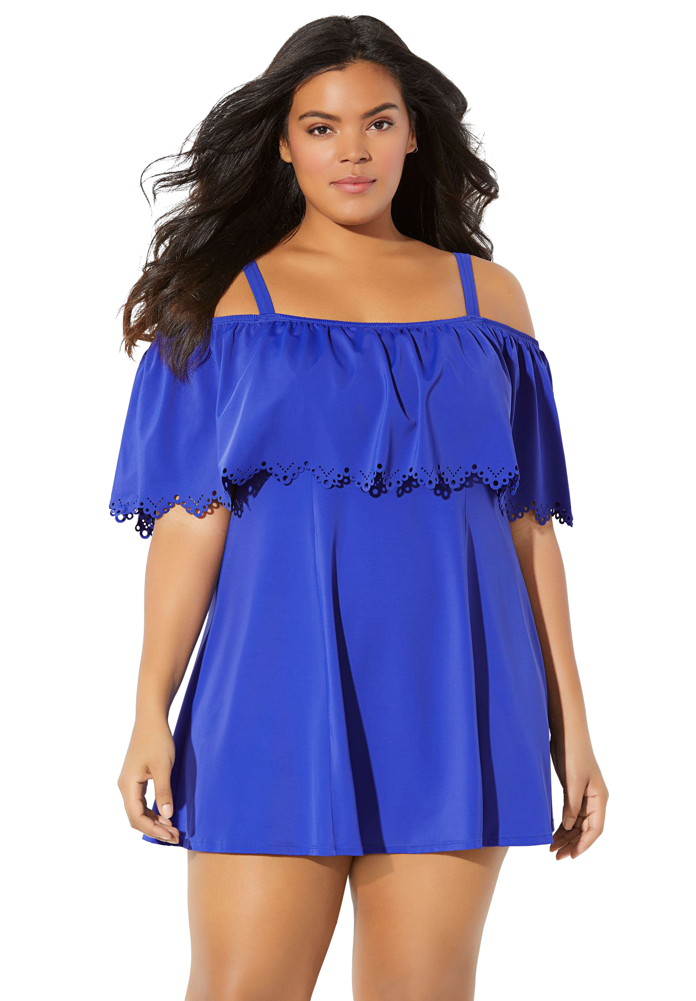 Women's Off-The-Shoulder Swimdress by Fit 4 U. Pretty ruffles define this all-in-one suit with features like soft bra cups, adjustable straps and a built-in brief. Swim Solution: Thigh ConcealerNylon/spandexHand washImported Sale Price: 126.00 USD. SKU: 1927324630938mk22W22W. Brand: Fit 4 U. Color: Twilight. Gender: female.