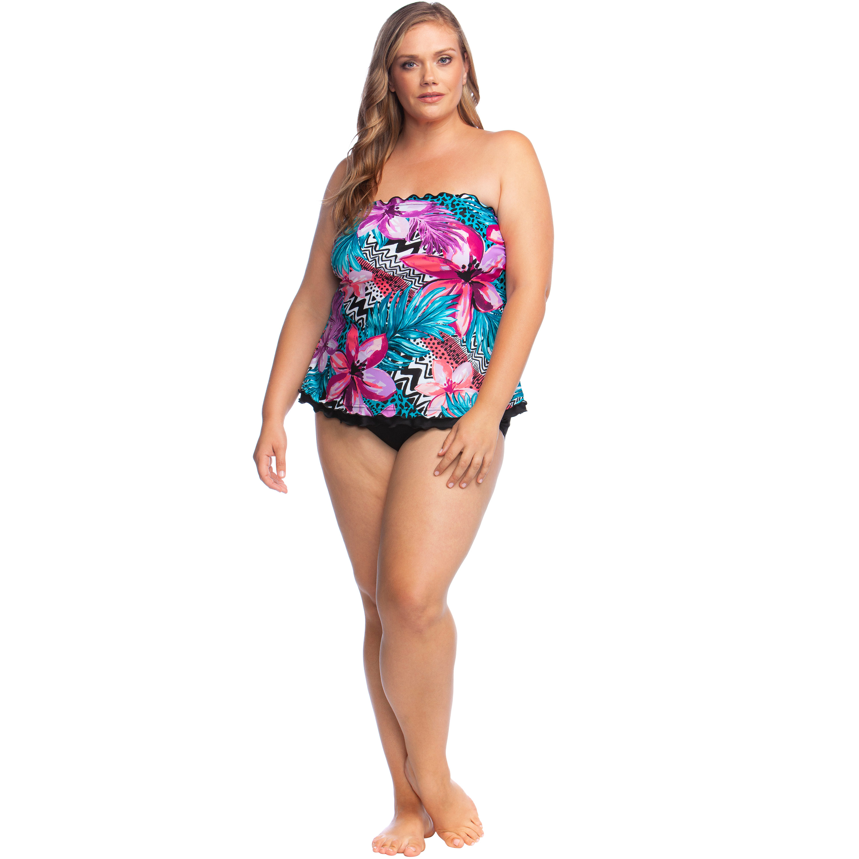 Women's Ruffle-Edge Tank Topini Top by Maxine of Hollywood. This top instantly slims while complementing your natural curves. Adjustable and removable straps. Soft cups. Grab your favorite swim skirt or shorts and you'll be beach-ready! Swim Solution: Tummy ControlNylon/Lycra spandex24" lengthHand washImported Sale Price: 64.00 USD. SKU: 1366124641978mk22W22W. Brand: Maxine of Hollywood. Color: Serengeti Stripe Floral. Gender: female.