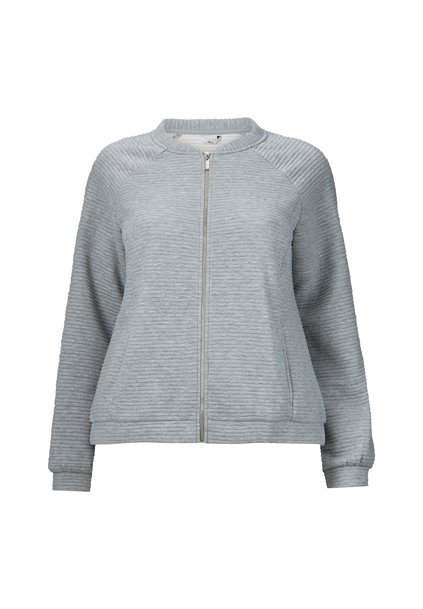 ellos Women's Ribbed Bomber Jacket. Meet the off-duty bomber of the season — Ribbed detail adds a sporty vibe, it is the perfect throw-on-and-go jacket for fall. Relaxed silhouetteStand collarLong raglan sleeves with elastic self-cuffZip front2 side pocketsElastic bottom bandApprox. 28" hits at low hipPolyesterMachine wash cold. Imported. Sale Price: 49.90 USD. SKU: 2570425321620mk14161416. Brand: ellos. Color: Heather Grey. Gender: female.